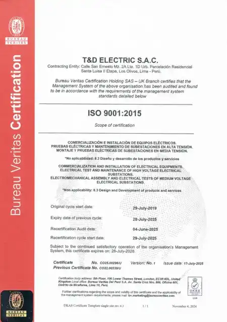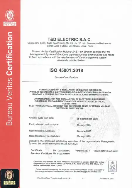 T&D Electric S.A.C. es una empresa peruana creada en el año 2008, con el objetivo de brindar soluciones, productos, proyectos y soporte técnico especializado de pruebas predictivas a principales activos en alta y media tensión de los sistemas de potencia en los sectores de minería, energía e industrial.